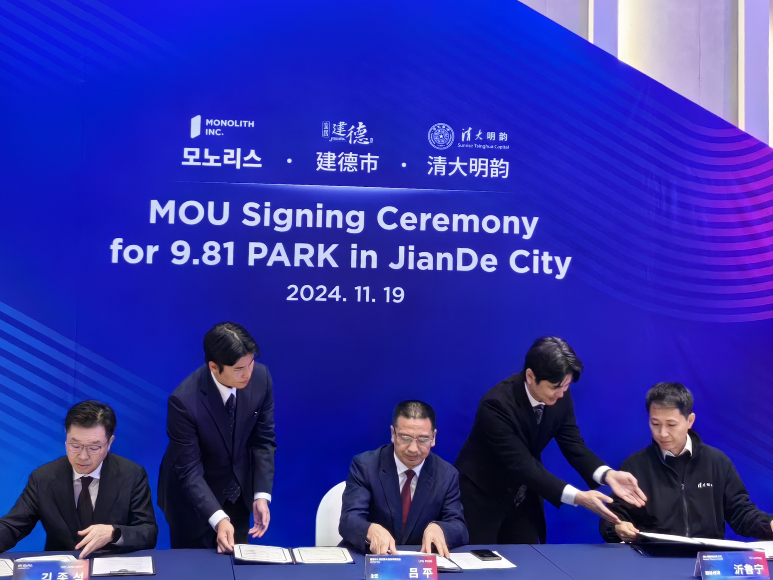 近日,建德市人民代表大会常务委员会主任吕平带队回访韩国济州道9.81PARK项目,旨在推进9.81PARK项目在中国的落地工作,尤其是无引擎重力赛车园区落地建德的相关事宜。经过前期多次磋商谈判及9.81项目CEO对建德的实地考察,双方已达成初步合作意向,特设立专项基金。清大明韵作为整个项目的基金管理人,共同参与此次回访并与合作方签署了谅解备忘录。