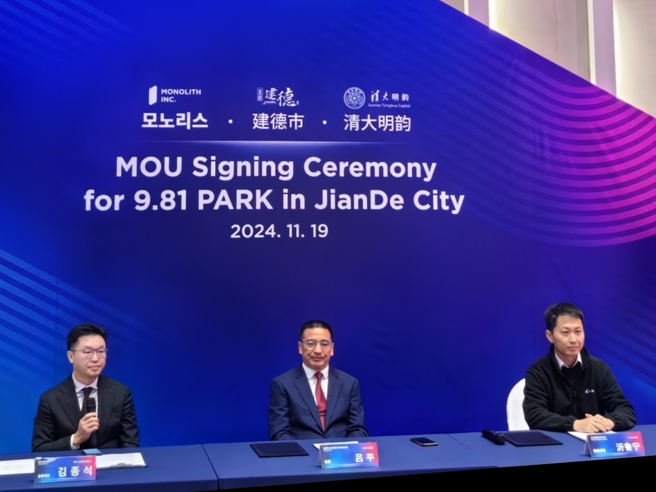 近日,建德市人民代表大会常务委员会主任吕平带队回访韩国济州道9.81PARK项目,旨在推进9.81PARK项目在中国的落地工作,尤其是无引擎重力赛车园区落地建德的相关事宜。经过前期多次磋商谈判及9.81项目CEO对建德的实地考察,双方已达成初步合作意向,特设立专项基金。清大明韵作为整个项目的基金管理人,共同参与此次回访并与合作方签署了谅解备忘录。