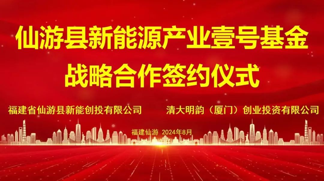 导 读为把握经济转型机遇,推动新能源材料产业发展,2024年8月20日,清大明韵创业投资有限公司与仙游新能创投签署战略合作协议,组建新能源产业壹号基金。这是仙游县首支政府产业基金与清华海峡研究院合作的新能源产业基金,将定投于仙游紫京新能源科技有限公司,双方携手共促仙游新能源产业链集群式发展。签约仪式signing ceremony清大明韵高级合伙人、市场部总经理阮洪峰与新能创投负责人陈琼萍作为代表签约,仙游县国资服务中心负责人、清大明韵董事长曾通、紫京科技董事长景煜、董事戴志扬等共同见证这一时刻。重要意义great significance清大明韵是清华海峡研究院的对外投资平台之一,专注于新能源、高端制造等产业投资与发展,帮助企业实现长期战略和价值成长,并为投资人带来长期符合增资收益。而福建省仙游县新能创投有限公司系仙游县负责基金投资和管理工作的国有企业。此次强强联合,势必会把仙游当地新